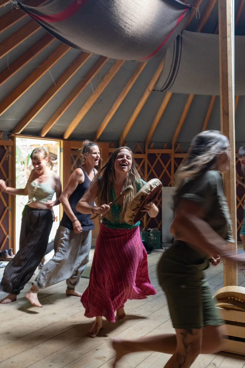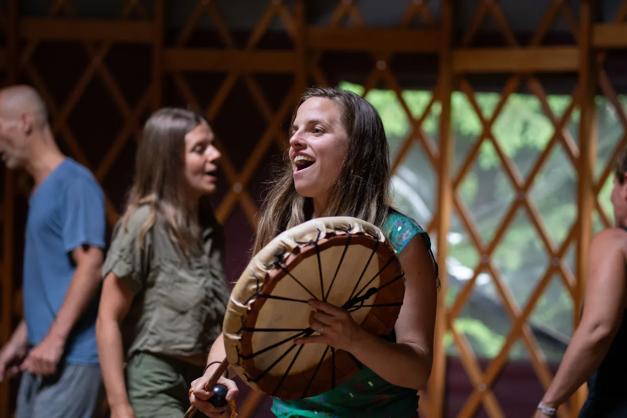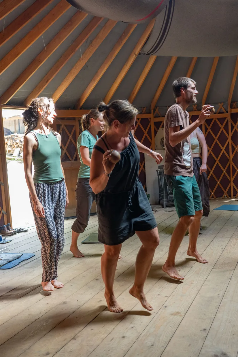 Unter Anleitung von Dana Andreu (Singer-Songwriterin, Wildnispädagogin) werden einfache, kraftvolle Lieder aus verschiedenen Kulturen, aus aller Welt gesungen.
