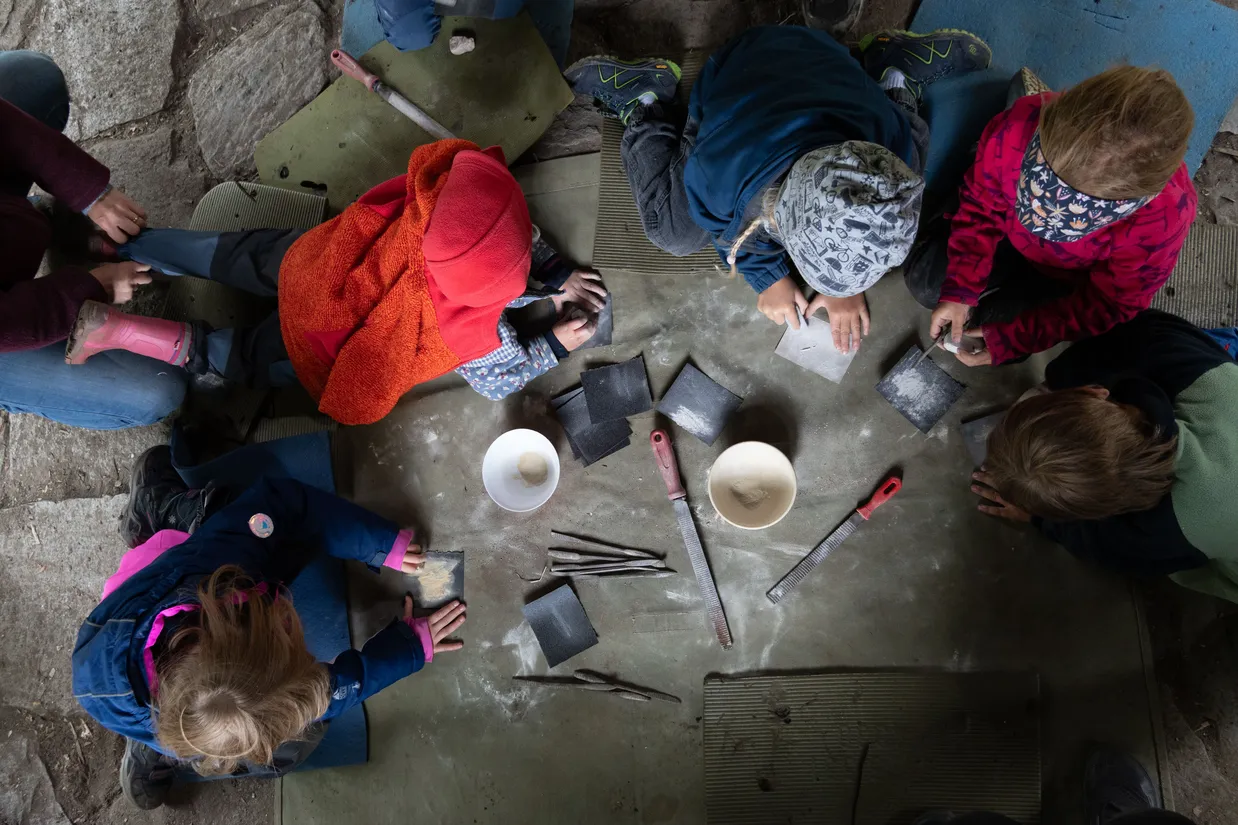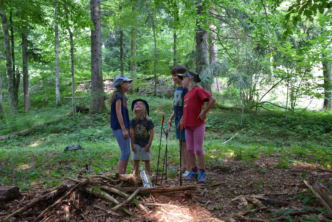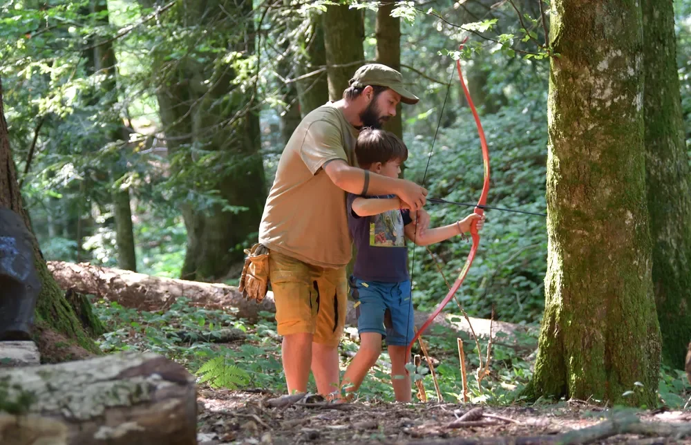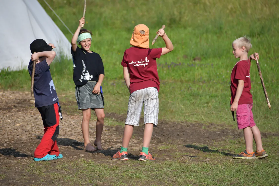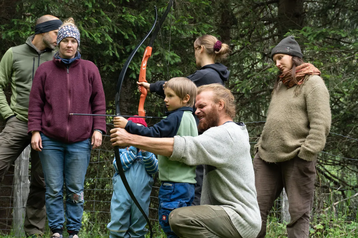 Gemeinsam lassen wir die moderne Welt hinter uns und nähern uns spielerisch unserem ursprünglichen Lebensraum an. Mögliche Themenschwerpunkte beinhalten Feuertechniken, Kochtechniken, Glutbrennen, Filzen, Bogenschiessen, Pflanzenwissen mit Herstellung eines Hustensirups, Schleichtechniken, bewusster Fleischkonsum und weitere.